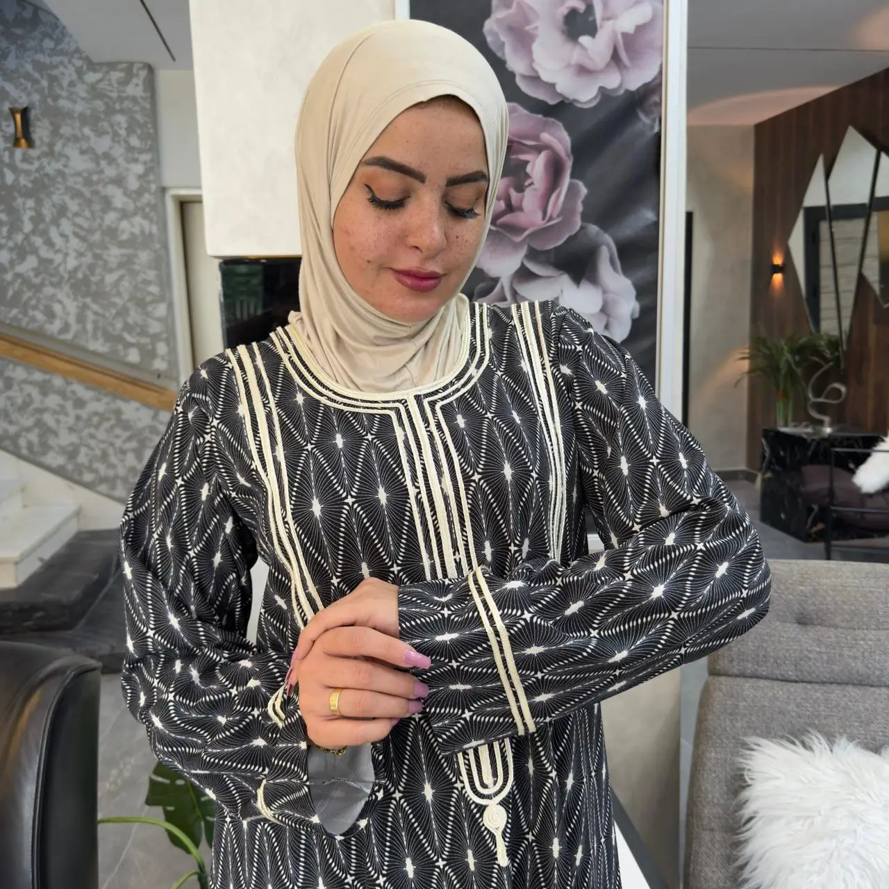 بخامة سكوبا شتوي فاخرة ✨ تتزيّن بتطريز قيطان بيج فاخر عند الصدر بتفاصيل دقيقة تبرز جمال القصّة وانسيابية التصميم ✨💫
