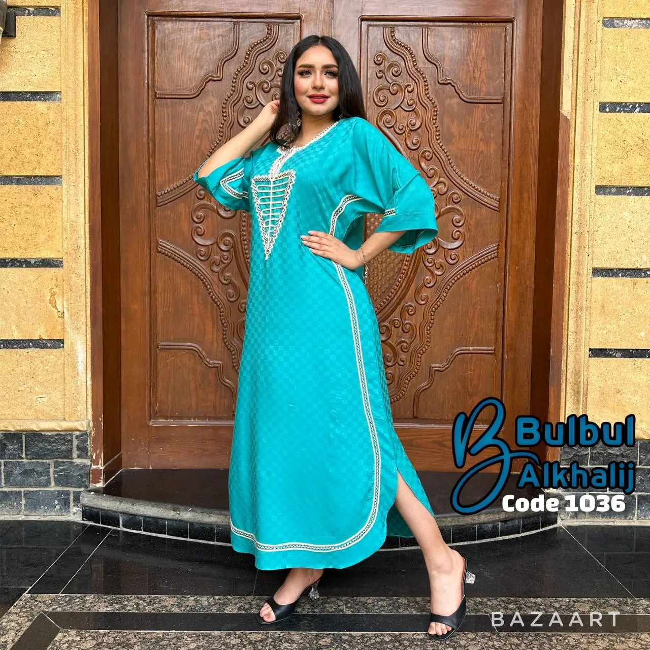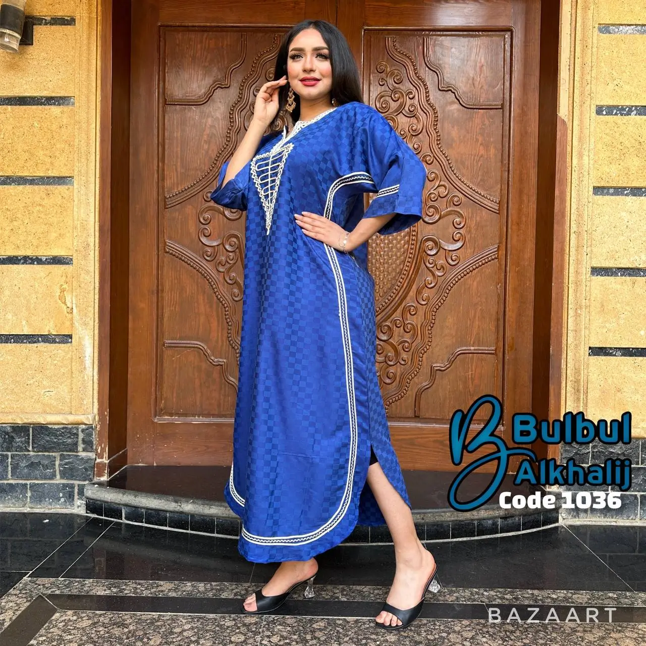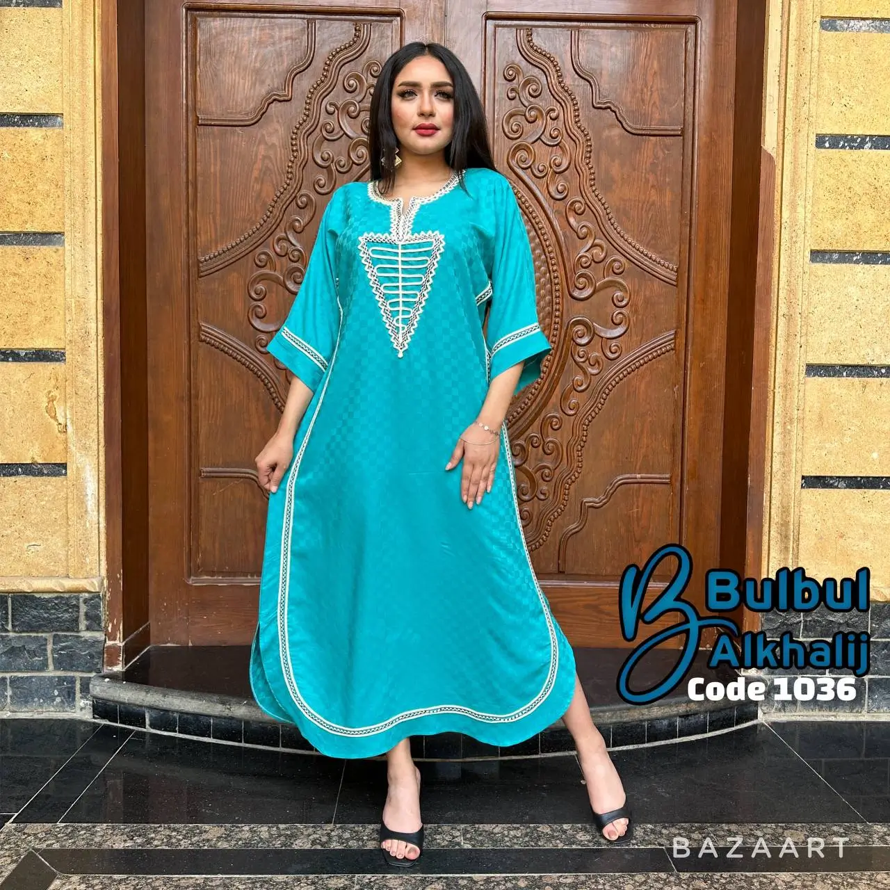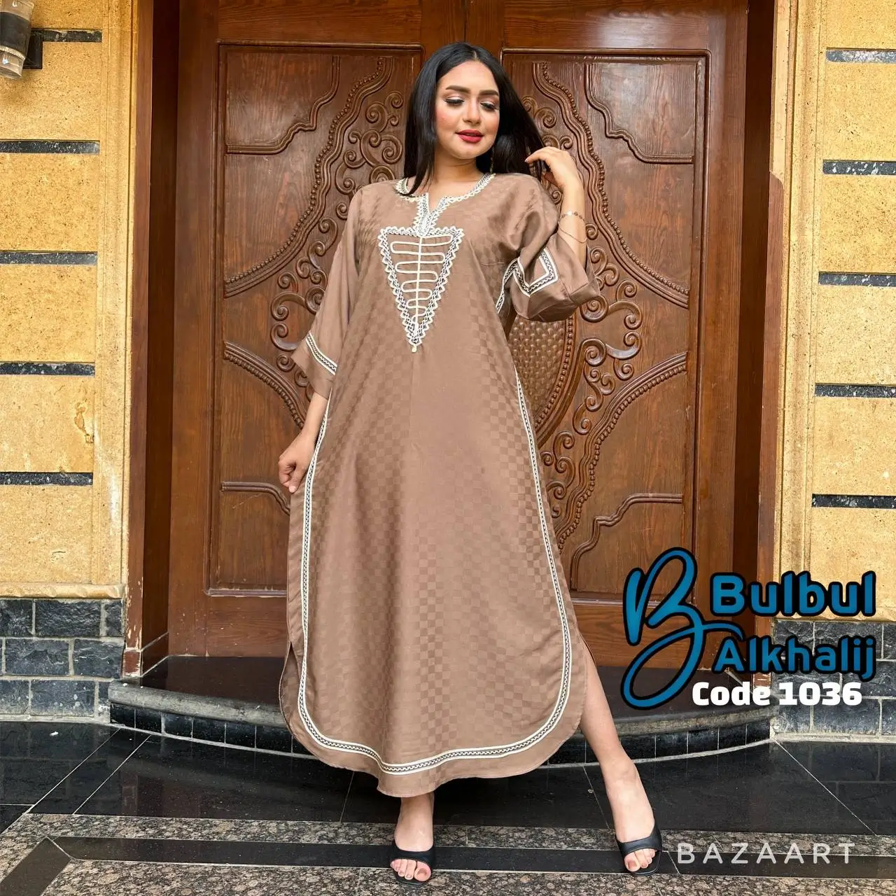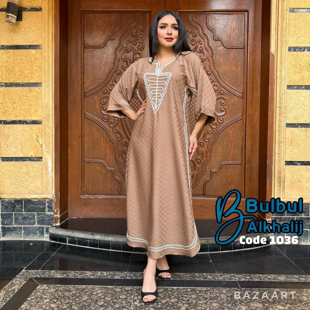 خامة قطن بيور تتنفس راحة وأناقة، يتزيّن الصدر بشغل قيطان فاخر يلفت الأنظار 👗