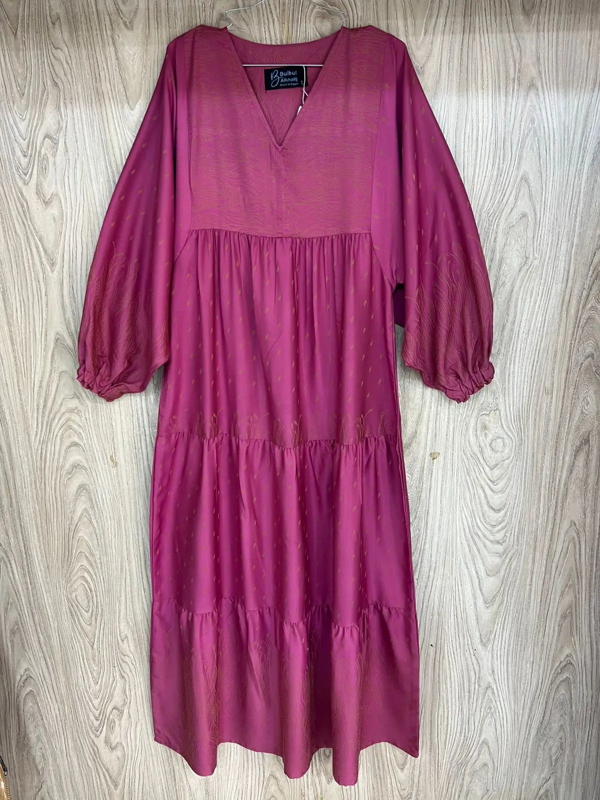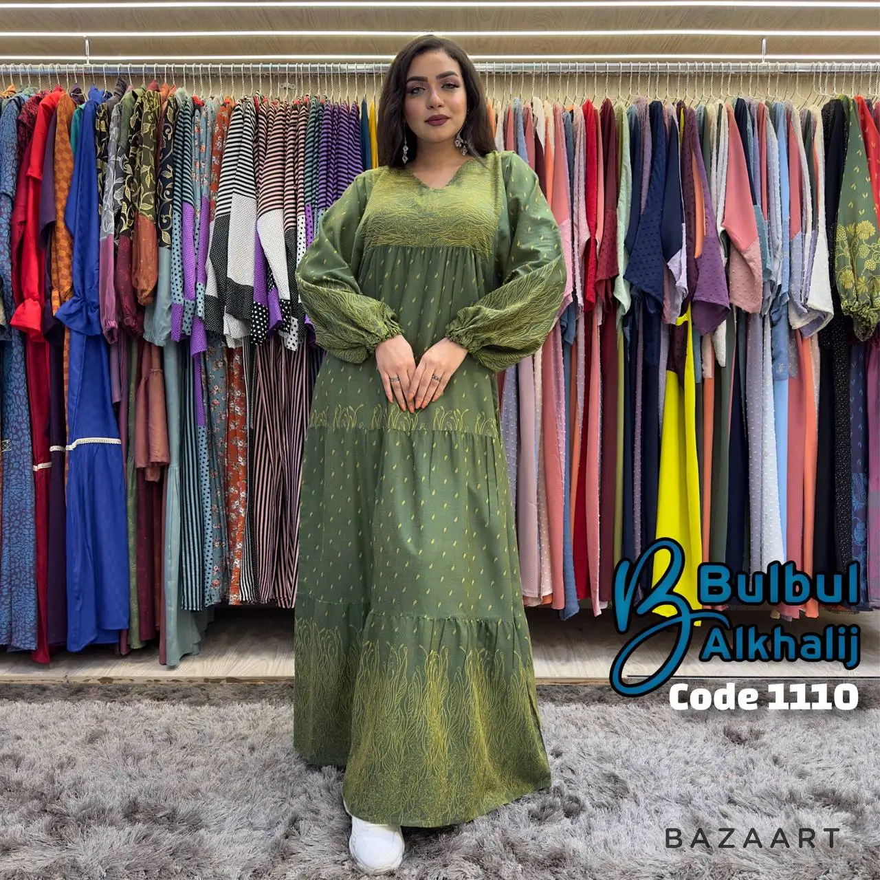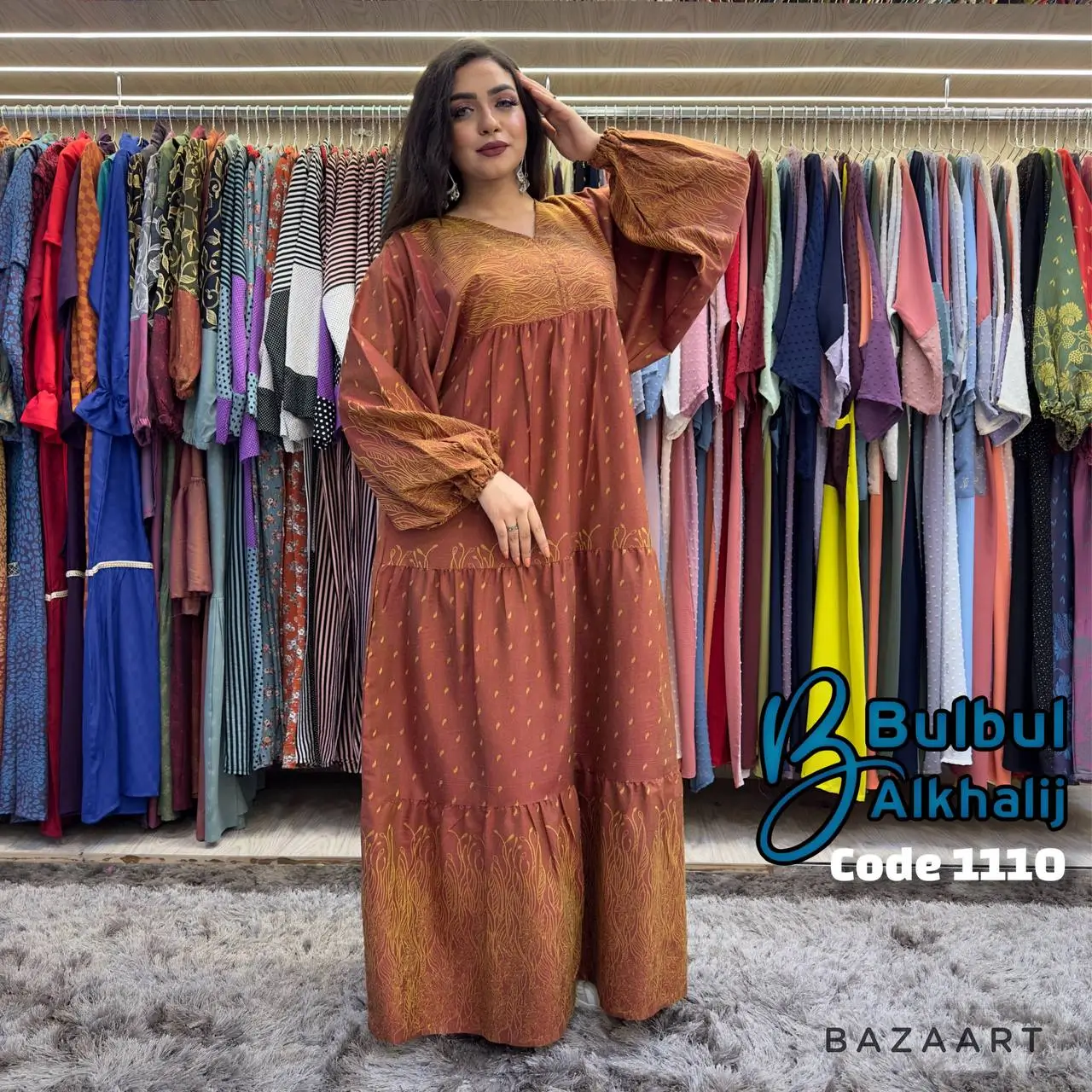 خامه قطن تنسل تتميز ب✨، كم واسع يمنحك حرية كاملة، والموديل نازل بتدرج فخم يخلق حركة سلسة وأنيقة مع كل خطوة 💫.