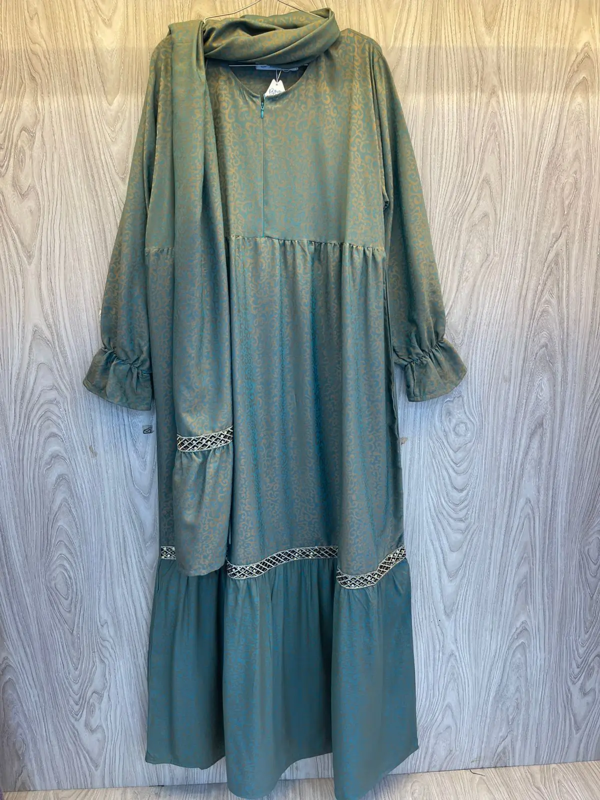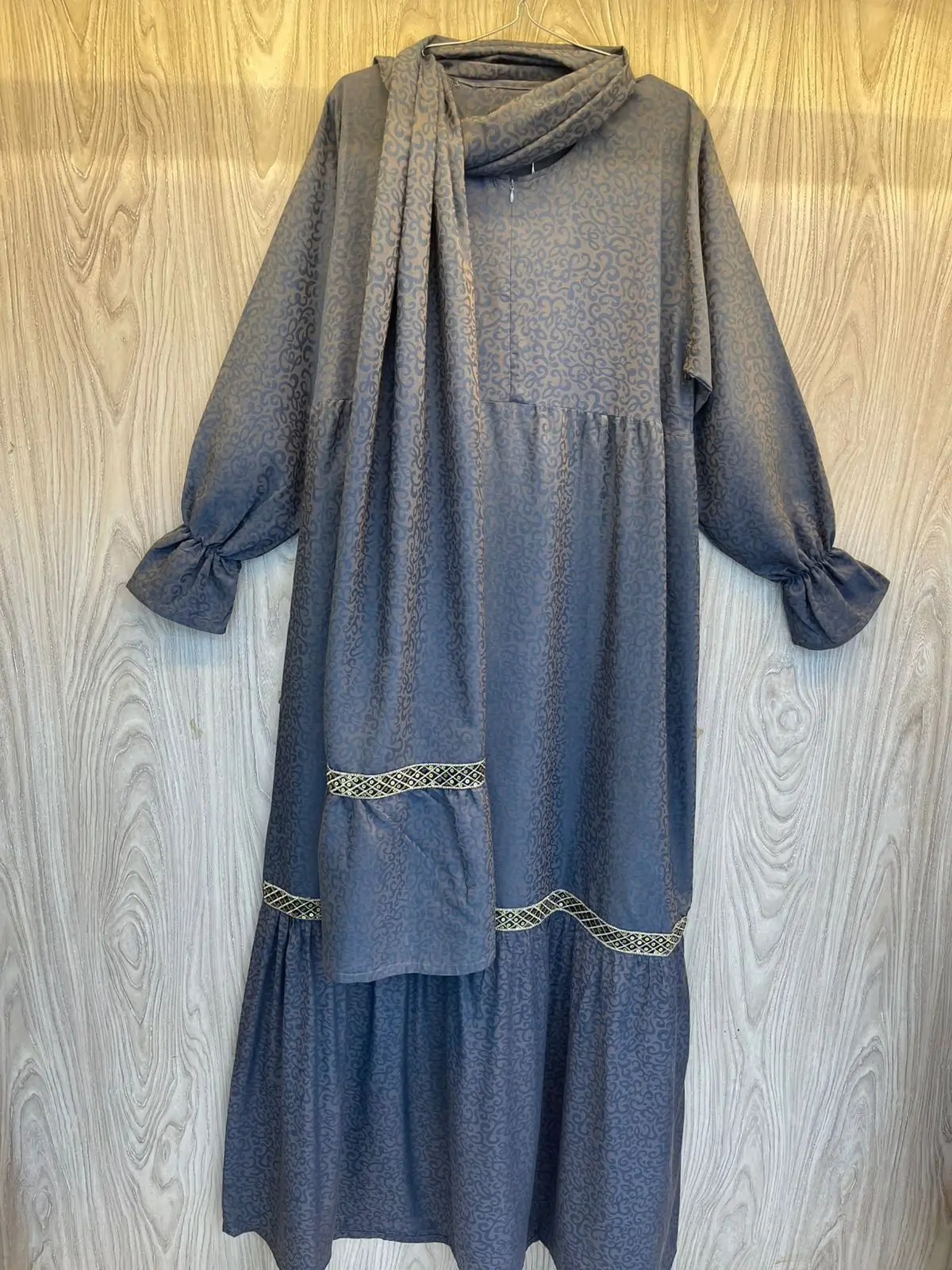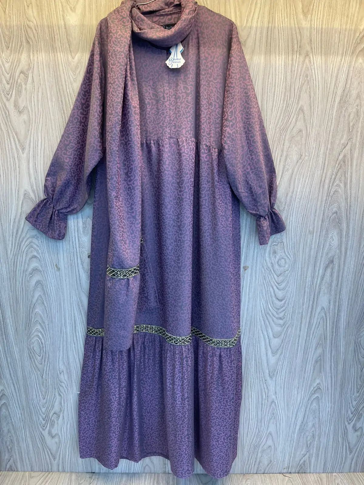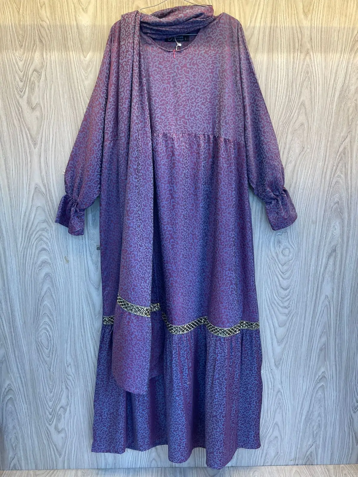 خامة قطنية تنسدل برقة ونعومة، والصرحة متصلة لتكمل الإطلالة الأنيقة. مزين من الأسفل بشريط ترتر يضيف لمسة فاخرة وراقية على كل تفصيلة. 💫