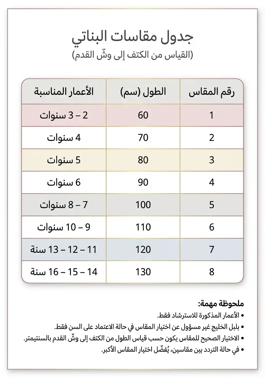 🔸 للبنت: مقاسات متدرجة حسب الطول لتناسق مثالي ومظهر متجانس