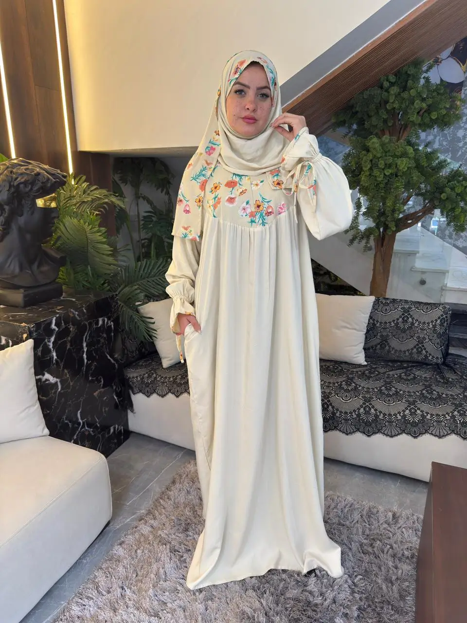 تصميم الإسدال مزود بسوستة أمامية، لسهولة الارتداء مع الحفاظ على الشكل العام المتزن 🧡