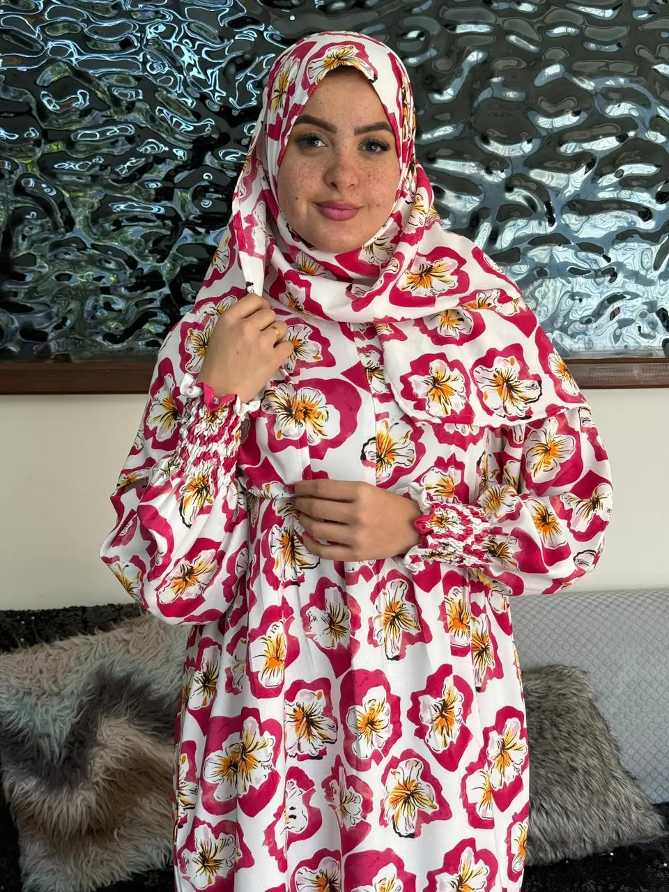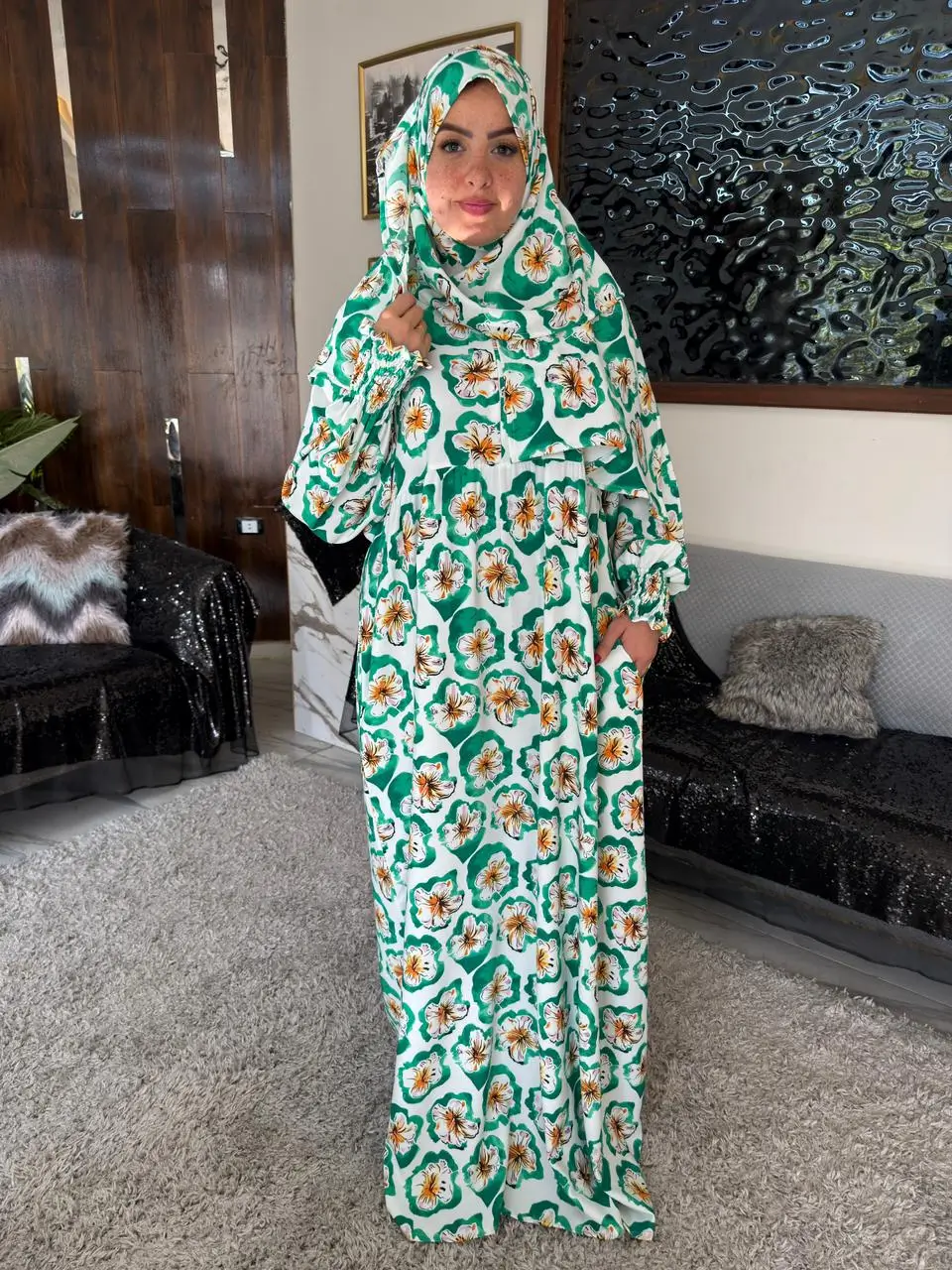 • طرحة متصلة تنسجم مع الإسدال لتكملة الإطلالة بأناقة